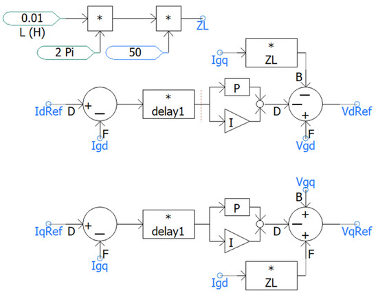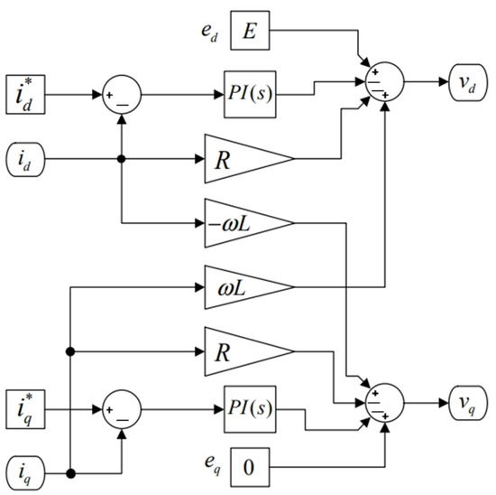 Here, and are the grid-voltage components. The feedback corrections and are generated by PI regulators acting on the current-tracking errors: