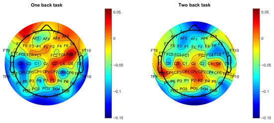 Scalp distribution of entropy values for one- and two-back tasks accordingly.
