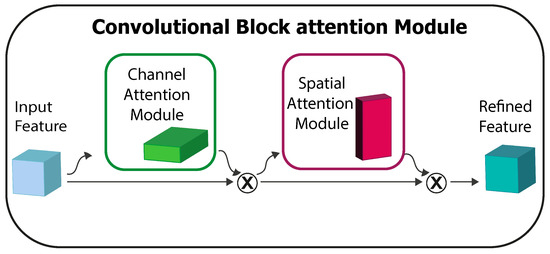 While channel attention focuses on the importance of the channels, the spatial attention mechanism, as introduced by Woo et al. [4], addresses the question of “where” to focus attention within the image. Spatial attention complements channel attention by identifying the most informative regions of the feature map. The process begins with the application of average-pooling and max-pooling operations along the channel axis, as these operations effectively highlight key spatial areas. The resulting pooled features are concatenated to form an efficient spatial descriptor, which is subsequently passed through a convolutional layer to generate the spatial attention map , signaling regions where attention should be emphasized or suppressed.