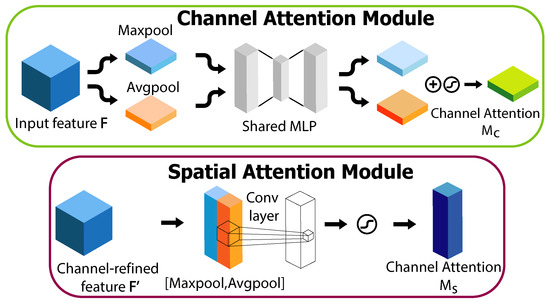 Woo et al. [4] developed the channel attention module to enhance the most important features of the input image by exploiting the inter-channel dependencies within the feature map. As each channel in the feature map functions as a detector [35], channel attention emphasizes the most informative channels. To efficiently compute this attention, we first reduce the spatial dimensions of the input feature map, commonly using average pooling to aggregate spatial information. This method is recommended by Zhou et al. [36] to capture target object regions effectively and has been incorporated by Hu et al. [37] into their attention mechanism for computing spatial statistics. Building on this, we argue that max-pooling can offer complementary insights into distinctive object features, further refining channel-specific attention. Therefore, we employ both average and max-pooled features simultaneously.