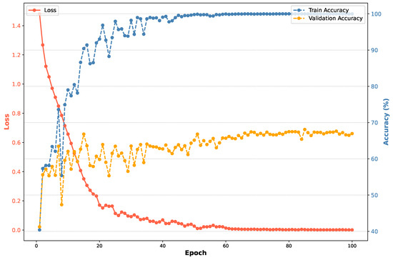 As shown in the table, our proposed CBAM-DenseNet121 model achieves a test accuracy of 71.26% with only ~7.1 M trainable parameters. This performance is highly competitive, modestly surpassing strong transformer-based models like LeRaC + SepTr (70.95%). While LeRaC + SepTr uses dynamic learning rate adjustments and axis-wise attention, our model’s unique hybrid architecture—combining the deep feature extraction of DenseNet121 with the refinement of CBAM—achieves this result with approximately half the number of parameters. This demonstrates a significant advantage in computational efficiency.