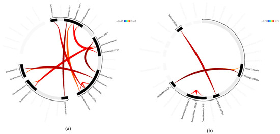 ROI-to-ROI connectivity map. (a) Stress phase. (b) Recovery phase.
