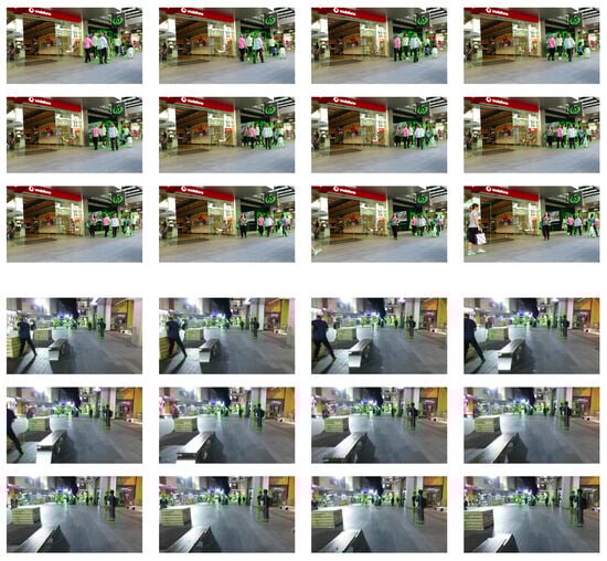 where is the Kalman gain at time t and where is the observation matrix. The key insight is that our pseudo-observation is not merely a simple linear state extrapolation. Instead, it is the direct output of our full hybrid motion model, as defined in Equation (1). This generated observation is therefore informed by both the object’s own learned nonlinear dynamics via the ITMC and the contextual influence of its neighbors via the CTAM. This makes it a significantly more robust estimate than what a standard Kalman filter could produce on its own. In terms of accuracy under strong occlusions, the performance of the POG degrades gradually. For short-term occlusions (1–5 frames), the recent trajectory provides a strong prior, and the generated pseudo-observation is highly accurate. For longer-term occlusions, while the uncertainty of the prediction naturally increases over time, the learned deep motion model provides a much more physically plausible trajectory than does a constant-velocity assumption. This prevents catastrophic drift and increases the likelihood of correct reidentification when the object’s detection becomes available again. The training targets for ITMC/CTAM are absolute states derived from the annotated boxes; the residual learner minimizes the discrepancy between and the ground-truth absolute state. This keeps the notation consistent: and are in the same coordinate space, and is the KF posterior. We refer to this component as the pseudo-observation generator (POG).
