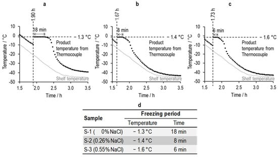 Determination of the ice nucleation temperatures () of 5% w/v sucrose with 0% NaCl (S-1), 0.26% NaCl (S-2), and 0.55% NaCl (S-3).