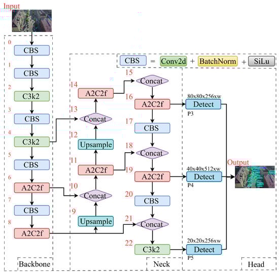This study employs YOLOv12 as the foundational model. The YOLO series is renowned in object detection for its rapid detection capabilities and end-to-end training framework [20]. As one of the cutting-edge versions of the series, YOLOv12 inherits its efficiency while introducing a real-time detection framework centered on attention mechanisms for the first time, breaking through the structural limitations of traditional convolutional neural networks. As shown in Figure 1, the area attention mechanism and residual efficient layer aggregation network in the core component A2C2f simplify the model structure while effectively reducing computational overhead, further improving detection accuracy and robustness.