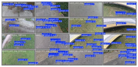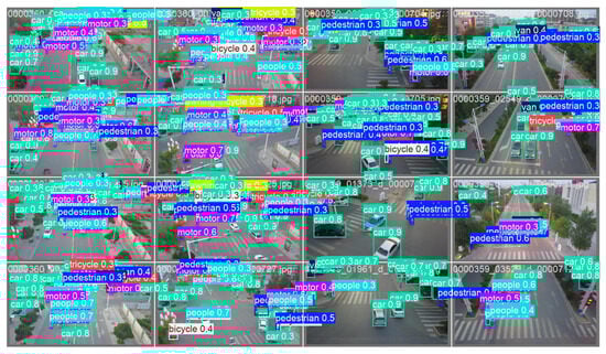 To more intuitively demonstrate the detection effectiveness of this method, we selected representative scenes such as urban roads and traffic intersections from the Visdrone2019 dataset and green roads from the UAVVaste dataset as experimental data [49]. These scenes contain a large number of diverse small objects, making them suitable for inference experiments. This study used LCW-YOLO for inference experiments, and the detection results are shown in Figure 10 and Figure 11.