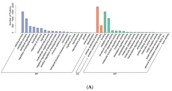 Differentially expressed proteins (DEPs) from Groups A, B, and C were subjected to Gene Ontology (GO) functional annotation, as shown in Figure 3.