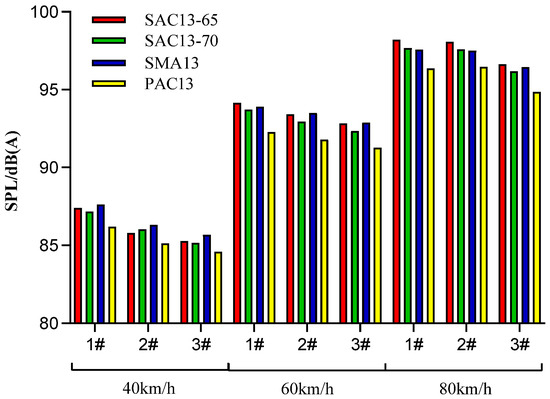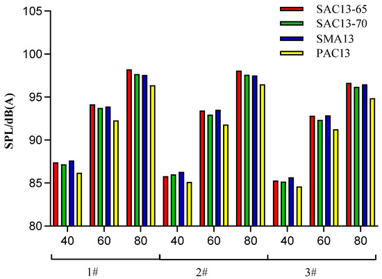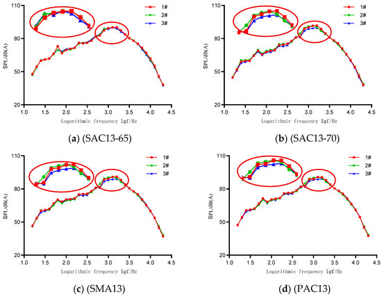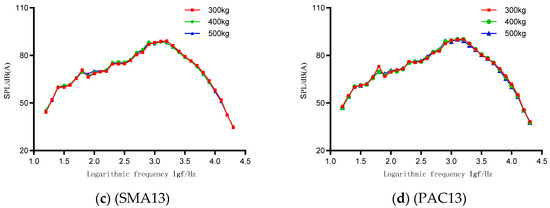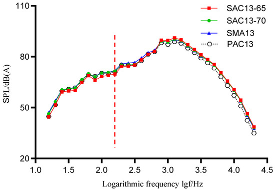 - In the full frequency range greater than 800 Hz, the noise spectrum curve of porous asphalt concrete PAC13 is significantly lower than that of the other three asphalt concretes, which fully demonstrates its significant noise reduction effect.