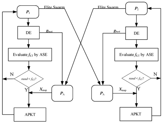 Then, the auxiliary population PA is evolved with Equation (8) as the objective function and the function evaluation of APMaxFEs as the termination condition. Herein, DE/best/1 is employed to evolve the auxiliary population. After evolution, the best solution Xmap of the auxiliary population will enact the mapped global best solution to perform KT on the target task.