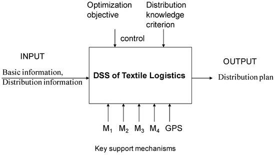 The paper uses an integrated computer-aided manufacturing definition (IDEF) method for reference and proposes a theoretical model of a textile logistics DSS, as shown in Figure 3 below: