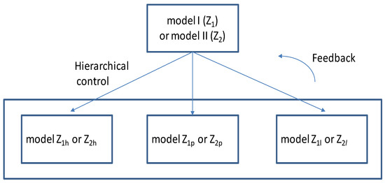 In the same way, model II can also be decomposed into similar submodels. Therefore, the hierarchical control of models I and II is as shown in Figure 6.