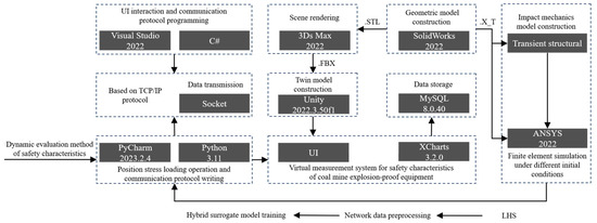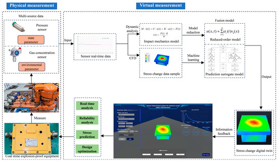 To improve the evaluation efficiency of explosion-proof safety characteristics in coal mine equipment and to visualize the mechanical behavior during the testing process, a virtual measurement method driven by real-time data is developed. This method enables dynamic assessment of explosion-proof safety characteristics and forms the basis of a virtual measurement system, which comprises five layers: the physical entity layer, the twin model layer, the twin data layer, the information transmission layer, and the application service layer, as illustrated in