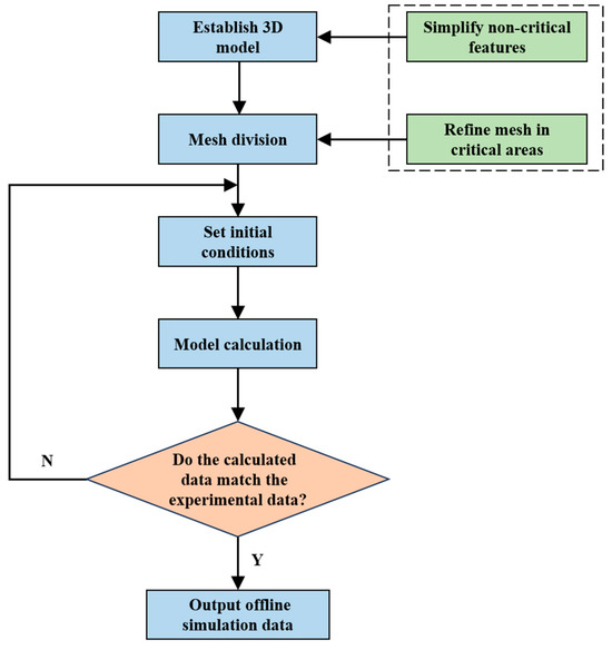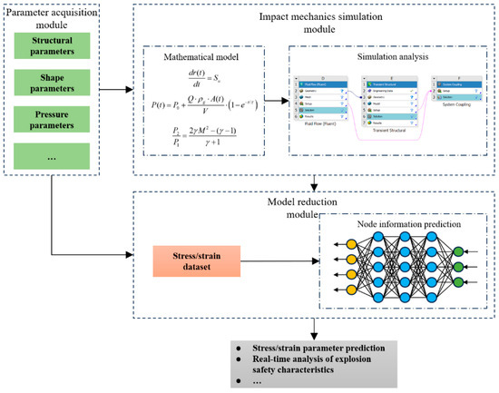 Figure 2. It comprises three core modules: a parameter acquisition module, an impact mechanics modeling and simulation module, and a model lightweighting module. The key technologies supporting digital twin modeling and simulation for explosion-proof equipment in coal mines include: (1) Gas explosion impact mechanics modeling; (2) Finite element analysis; (3) Simulation model lightweighting techniques.