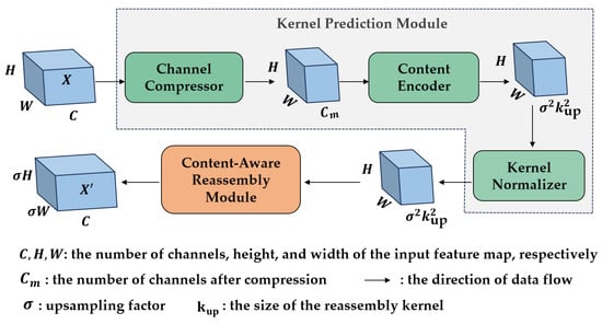 - Wang, J.; Chen, K.; Xu, R.; Liu, Z.; Loy, C.C.; Lin, D. CARAFE: Content-Aware ReAssembly of FEatures. In Proceedings of the 2019 IEEE/CVF International Conference on Computer Vision (ICCV), Seoul, Republic of Korea, 27 October–2 November 2019. [Google Scholar]