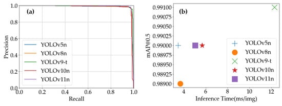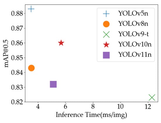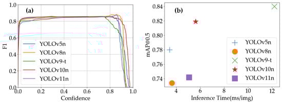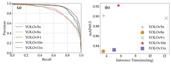 In terms of performance, YOLOv11 demonstrates substantial improvements over its predecessors. According to benchmark tests on the COCO dataset, YOLOv11 achieves higher mean average precision (mAP) while maintaining faster inference speeds compared to earlier versions. As a derivative variant, YOLOv11n adopts a streamlined architecture and optimized parameter configurations, significantly reducing model complexity while retaining high detection accuracy [37]. Therefore, it is suitable for real-time applications requiring rapid processing.