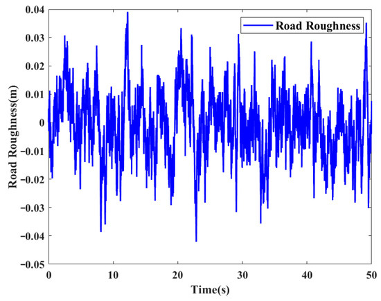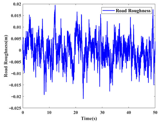 The road excitation input is a stochastic road input, and a random white noise time-domain road surface simulation model is adopted as the road input model for simulation analysis [18]. The filtered white noise time-domain road input model used in this study is as follows: