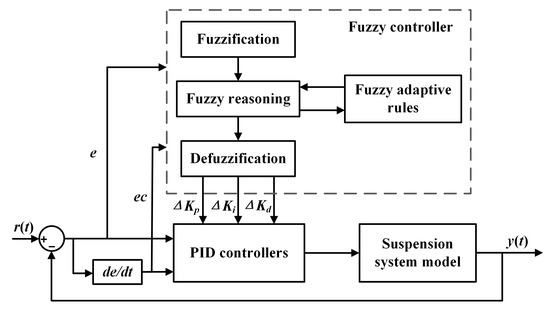 And the controllable damping force constitutes the final output of the fuzzy adaptive PID controller. The architecture of this controller is depicted in Figure 8.