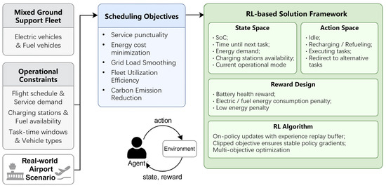 Wang F, Zhou M, Xing Y, Wang H-W, Peng Y, Chen Z. A Deep Reinforcement Learning Framework for Multi-Fleet Scheduling and Optimization of Hybrid Ground Support Equipment Vehicles in Airport Operations. Applied Sciences. 2025; 15(17):9777. https://doi.org/10.3390/app15179777