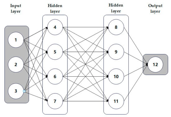 A simple DNN neural network model is shown in Figure 3, with the leftmost input layer, rightmost output layer, and middle hidden layer.
