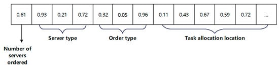 Completeness and Structured Representation: The particle position vector is partitioned into sequential segments, each responsible for a specific aspect of the decision-making, as shown in Equation (16). The first dimension determines the number of servers K. The subsequent K dimensions determine the type of each server, and the next K dimensions determine the purchase mode. The final segment, whose length equals the number of DNN tasks, handles the task-to-server mapping. This structure ensures that every possible solution within the defined constraints (e.g., max servers M) can be represented.