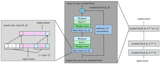 TCN is a type of deep learning model based on CNN architecture, especially used for handling time series data [15]. Compared to CNN and LSTM, a TCN utilizes causal and dilated convolutions to effectively capture long-range dependencies within sequences, while mitigating issues related to gradient vanishing and exploding during training.