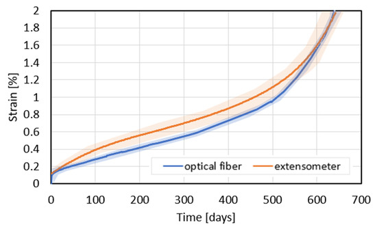 - Yazdizadeh, Z.; Marzouk, H.; Hadianfard, M.A. Monitoring of concrete shrinkage and creep using Fiber Bragg Grating sensors. Constr. Build. Mater. 2017, 137, 505–512. [Google Scholar] [CrossRef]