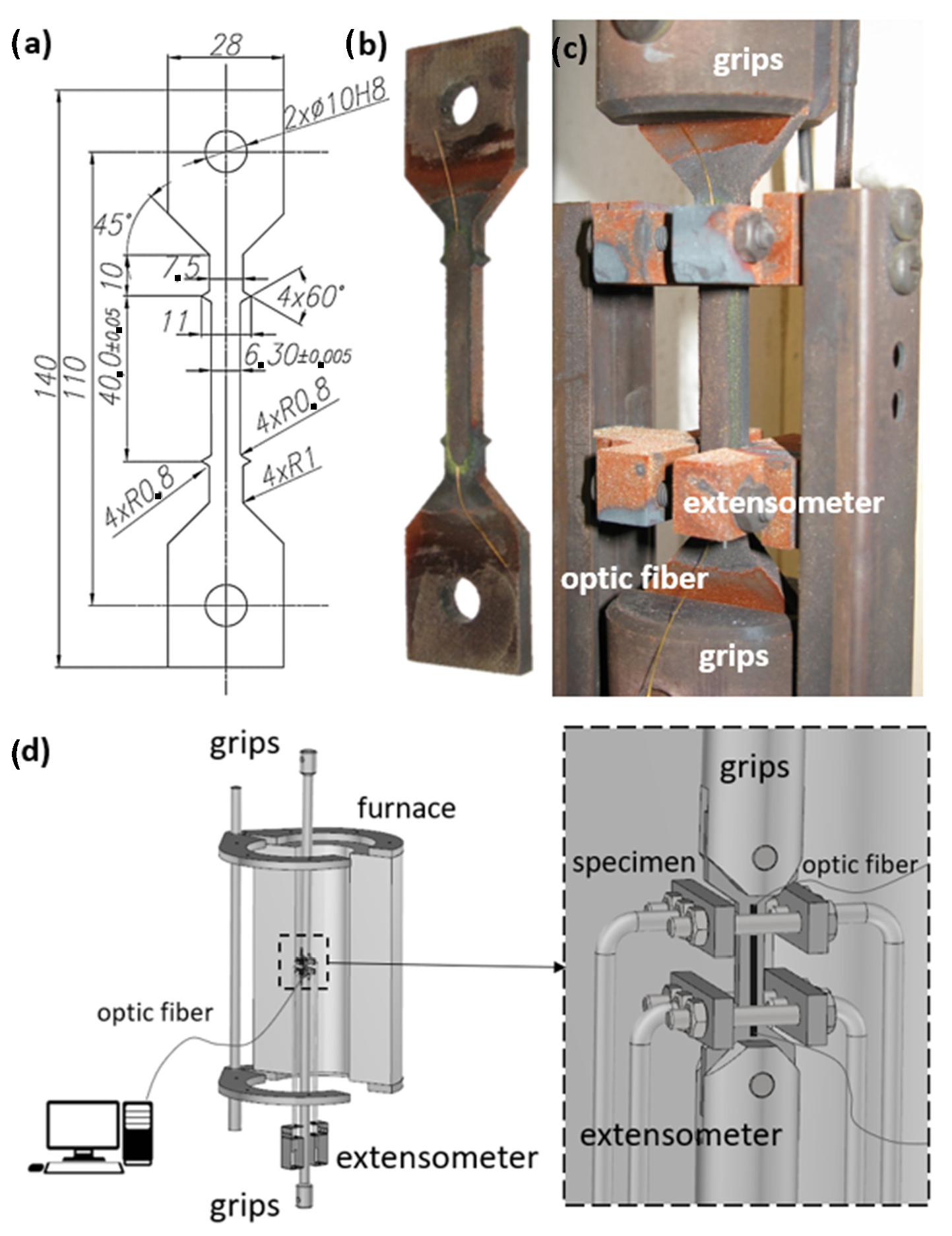 - Sensor Placement: Aligning the fiber optic strain sensor along the axis of symmetry of the test specimen.