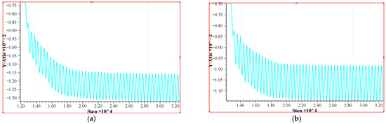 As shown in Figure 17, the maximum displacement of the surrounding rock decreases with increasing support strength, while the impact of drawing disturbance weakens. The deformation fluctuations per drawing cycle stabilize progressively. The four schemes controlled maximum roof displacements at 13.21 mm, 11.43 mm, 4.22 mm, and 4.10 mm, respectively. To evaluate drawing disturbance effects, post-support static equilibrium displacement is defined as the initial value, and the ratio of maximum disturbed displacement to maximum static displacement is termed the disturbance displacement ratio (DDR), representing disturbance intensity. The specific values are listed in Table 6.