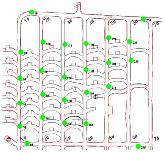 Layout positions of monitoring points. (green dots, numbered 1#, 2#, etc.).