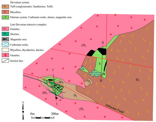 10]. The Zhuantobe deposit was discovered in 1964 as a result of a 1:50,000-scale geological survey. Following its discovery, exploration of the mine workings was carried out, and a geological map of the area was compiled [