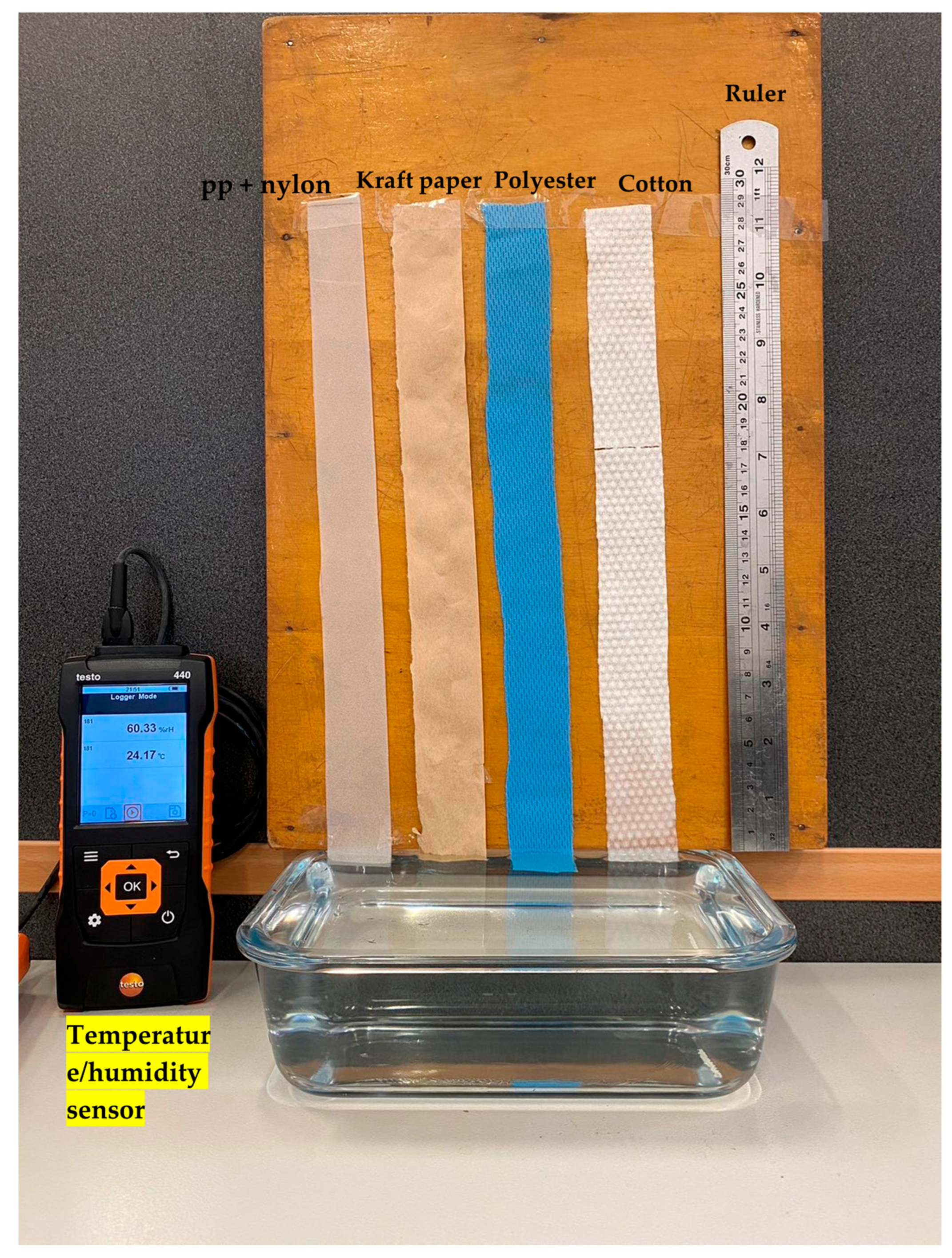 | Wicking height | Steel ruler | 0 to 30 cm | ±1 mm |