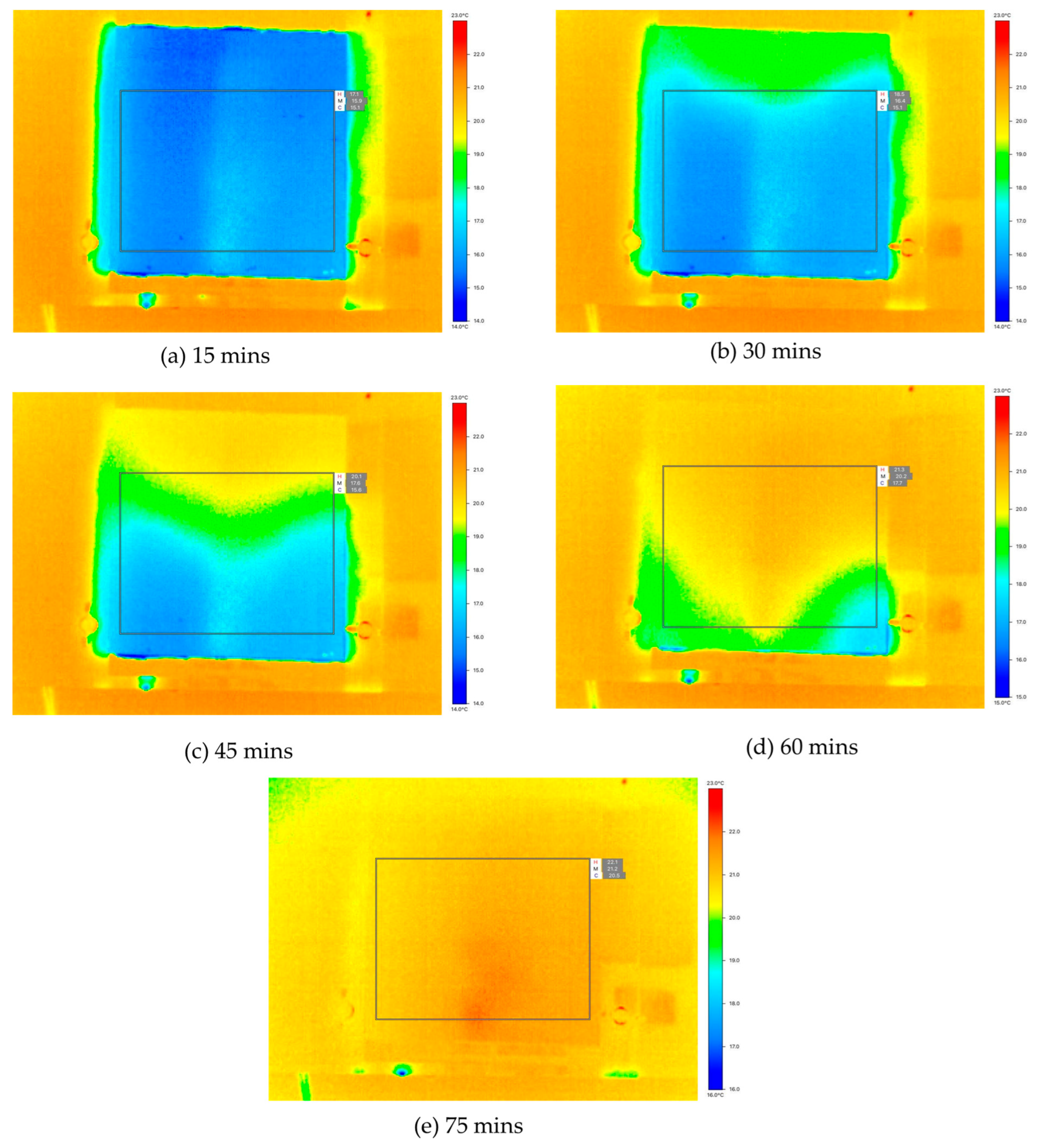 | Surface temperature | Thermal imager (Testo 883) | −30 to 650 °C | Thermal sensitivity < 0.04 °C |