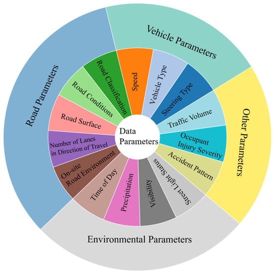 The severity of traffic accident injuries results from the interaction of multiple factors []. Significance analysis of accident parameters helps identify the main causes of accidents. It also aids in replicating accident scenarios to differentiate responsibility or to develop dangerous scenario simulations.