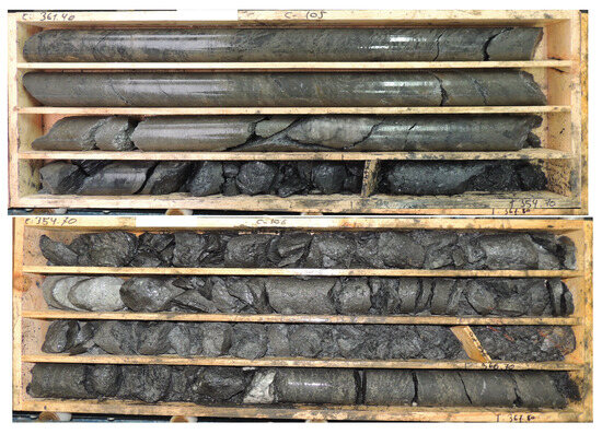 The total or partial loss of core material during DDH drilling, and consequently the loss of information, is a common occurrence. The loss of drilling core recovery (Figure 4) gives rise to the following issues: (i) difficulty in core logging, along with imprecise estimation of depths and thicknesses, which hampers the accurate definition of mineralized domains; (ii) loss of structural information, which limits geological and geotechnical interpretation; (iii) biased sampling, both due to the lack of material and the difficulty in making an accurate longitudinal split of the core; (iv) difficulty in accurately estimating the grade. If the lost material has a lower grade than the recovered section, the result is an overestimation of the grade, potentially leading to the inclusion of a sample in the ore zone that should, in fact, have been classified as waste. Conversely, if the lost material has a higher grade, an underestimation occurs; (v) difficulty in accurately determining the density of the sample, and thus in calculating a reliable tonnage.