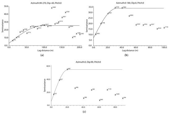 - Buelga Díaz, A.; Castañón Fernández, C.; Ares, G.; Prieto, D.A.; Álvarez, I.D. RecMin Variograms: Visualisation and Three-Dimensional Calculation of Variograms in Block Modelling Applications in Geology and Mining. Int. J. Environ. Res. Public Health 2022, 19, 12454. [Google Scholar] [CrossRef]