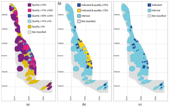 In other words, these are minimum standards or guidelines for practice, and are not intended to be used as enforcement tools. Therefore, the responsibility for ensuring appropriate disclosure lies with the technical competence of the individual or individuals who approve the resource calculations and classification, defined as the competent person (CP) or qualified person (QP). As a result, mineral resource classification is subjective and largely depends on the experience of the qualified or competent person [40,41]. A common misconception is that resource classification methods provide an objective assessment of confidence; indeed, the classification is a manifestation of the opinion held by the CP/QP.