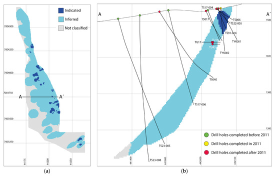 - Stephenson, P. Mineral Resource Classification: How the Viability of Your Project May Hang on a Qualified Person’s Judgement; Technical report; Canadian Institute of Mining, Metallurgy and Petroleum: Westmount, QC, Canada, 2011. [Google Scholar]