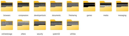 To construct a representative and controlled dataset, a total of 252 software samples were manually acquired through the Ninite [33] and Windows Remix [34]. These platforms provide a standardised and reliable approach for batch application installation. Ninite is also widely recognised for facilitating the unattended download and installation of multiple applications directly from official sources. Windows Remix is a community-driven solution built upon the Chocolatey package manager for generating batch installation scripts [35]. This approach allows for the efficient deployment of software from trusted repositories for customisation and control. In this research, the applications selected through these tools were for the representation of a diverse range of functionalities and vendors. As illustrated in Figure 1, each was systematically categorised according to its primary function, such as communication, file compression, media, and system utilities. This classification is to support comprehensive evaluation.