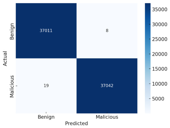 Dropout regularisation is applied at multiple points within the head to mitigate overfitting, which is a critical consideration given the class augmentation and potential for label noise in malware data. The final classification layer reduces the 1024-dimensional vector to an output of two classes corresponding to the binary classification categories malicious and benign. This is followed by a softmax activation to produce normalised probability distributions over the two classes. The network is trained using a categorical cross-entropy loss function with performance optimised via the Adam optimiser. The separation between the convolutional feature extractor and the dense classifier ensures flexibility for future extensions, including transfer learning, multimodal fusion, or attention mechanisms. This makes the network a robust baseline model for intelligent malware classification. Table 7 presents a summary of the architectural stages along with the corresponding output shapes.