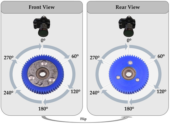 Flowchart of the real dataset creation process: Each gear was photographed under rotation six times from the front and six times from the back.