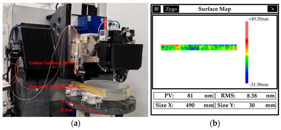 (a) Straightness measurement setup. (b) Precision straightedge surface error.