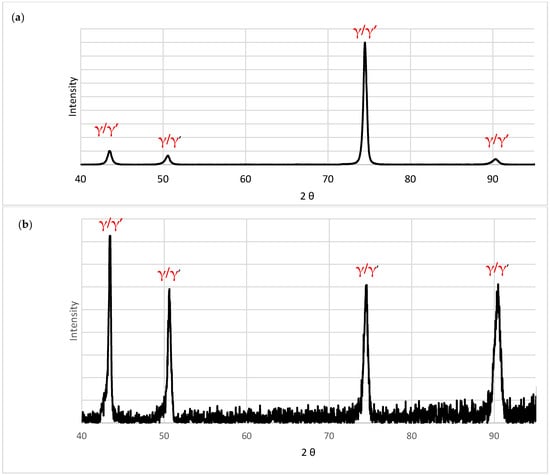 XRD analysis confirmed phase stability throughout the processing sequence, with the austenitic γ-phase (FCC) remaining as the primary constituent under both as-built (Figure 6a) and post-HIP conditions (Figure 6b). Furthermore, when compared to the HIP sample, it is clear that the phase composition remains the same, whereas anisotropy decreases after the HIP treatment.