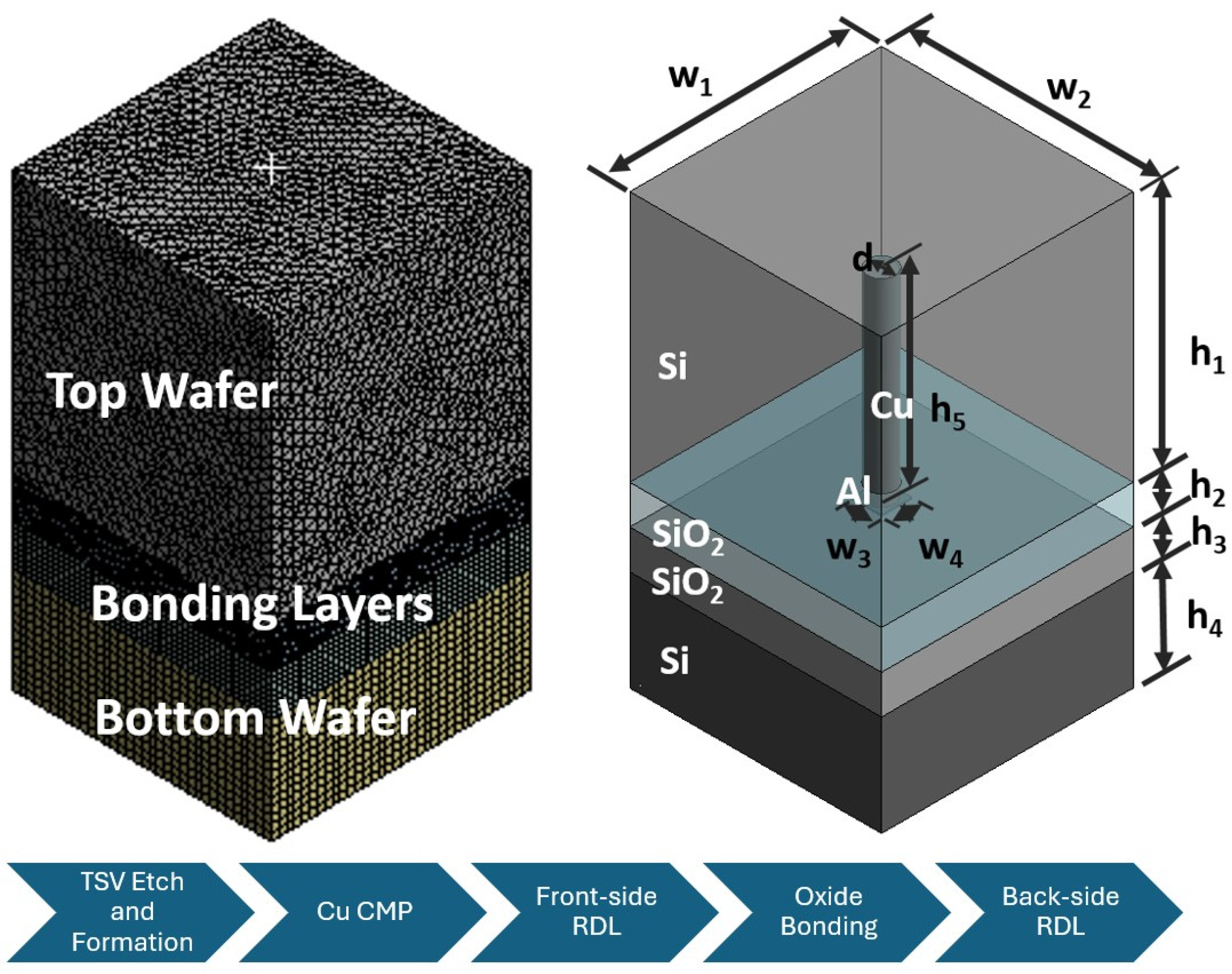 Table 1 illustrate the process flow and device dimensions used in the 3D oxide-bonded stacking structure with TSV interconnects, as simulated in this study [