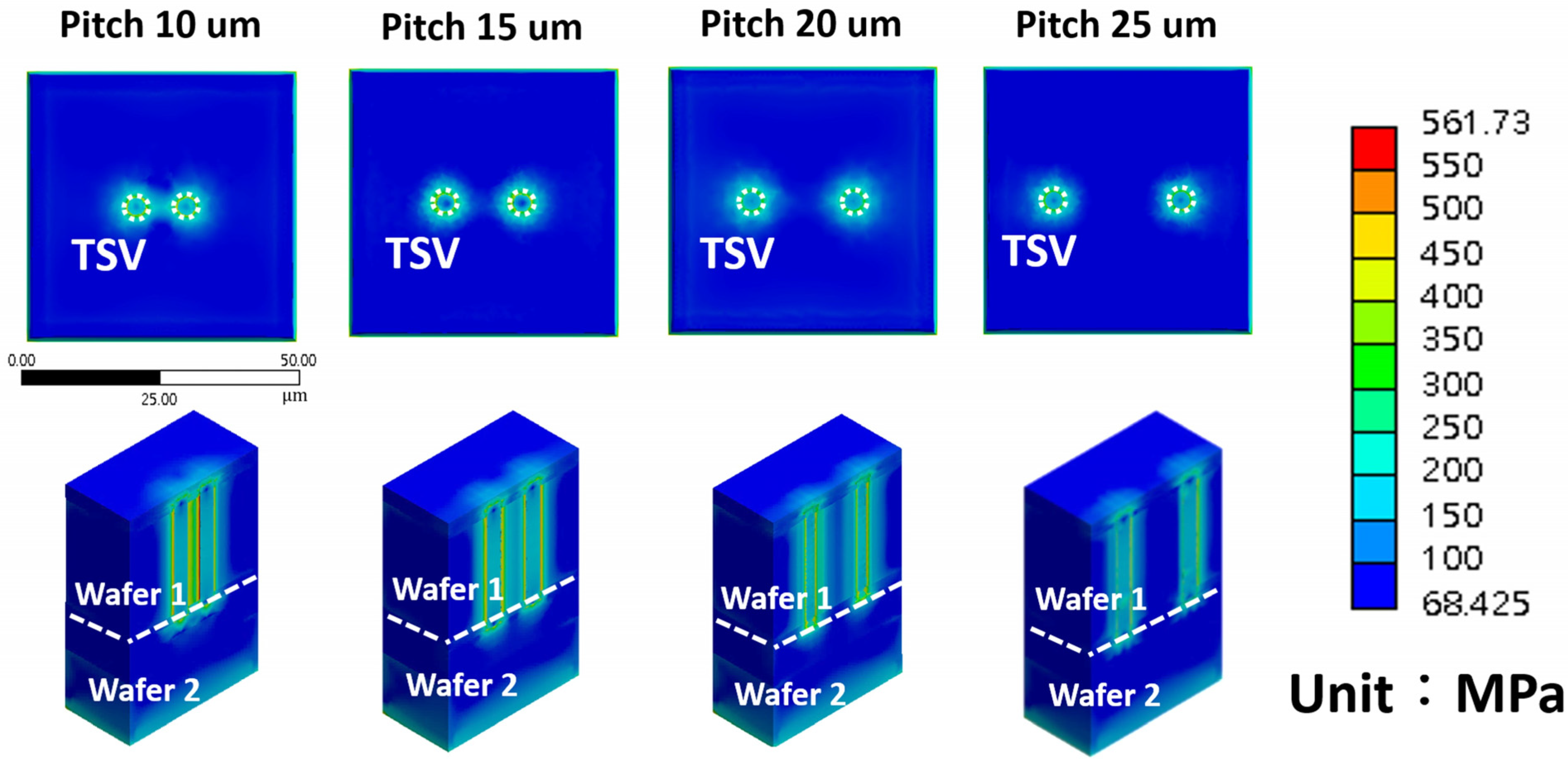 Variation of Equivalent Stress in the 3D Oxide-Bonded Structure with Different TSV Pitches.