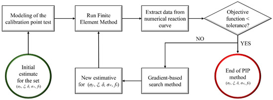 In the parametric identification stage, an iterative procedure based on the force versus displacement curve for the objective function was adopted, using the least squares method. A gradient-oriented method was used for the search strategy, while the problem was solved numerically using finite elements.