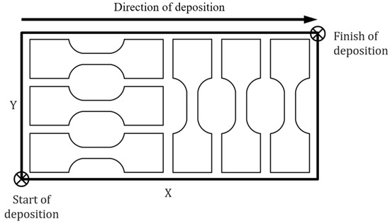 It is important to mention that specimens V1, V4, H1, and H4 were not considered for this work. Figure 5 shows how these specimens are removed, taking into account the printing direction adopted as a strategy.