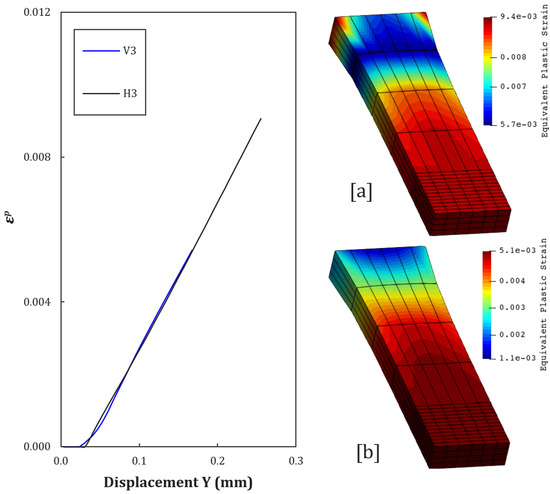 Equivalent plastic strain contours at [a] = H3, and [b] = V3.