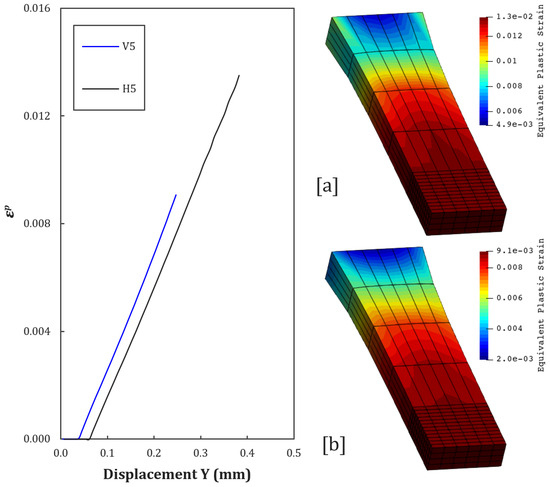 Equivalent plastic strain contours at [a] = H5, and [b] = V5.