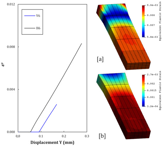 Equivalent plastic strain contours at [a] = H6, and [b] = V6.