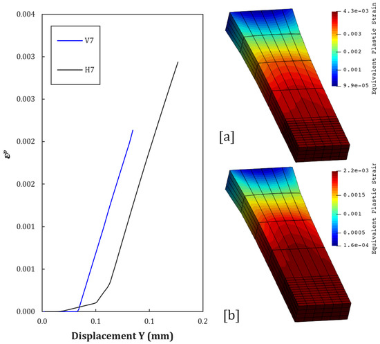 Equivalent plastic strain contours at [a] = H7, and [b] = V7.